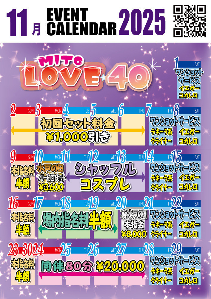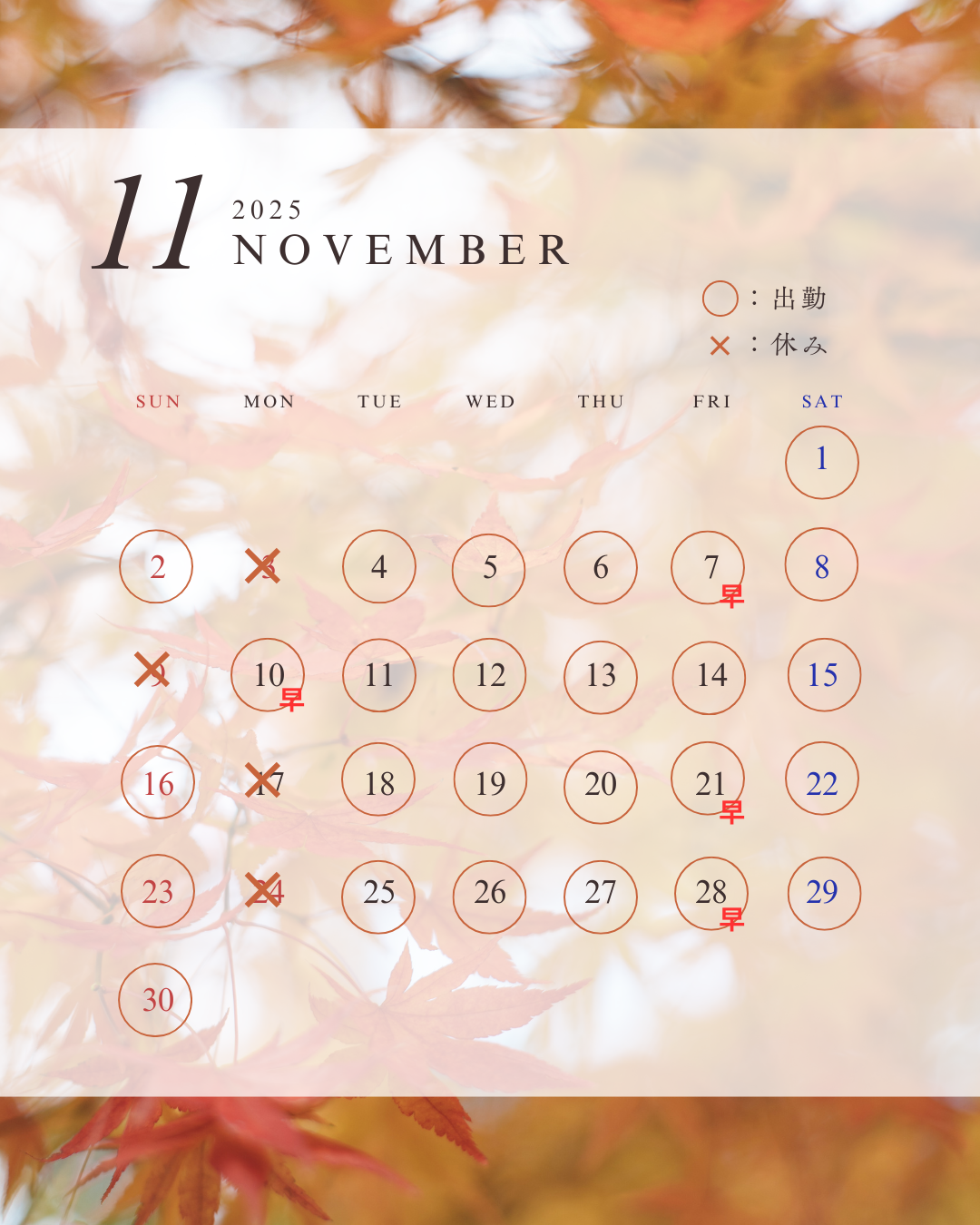 ◇11月 イベントカレンダー&あや出勤予定表◆